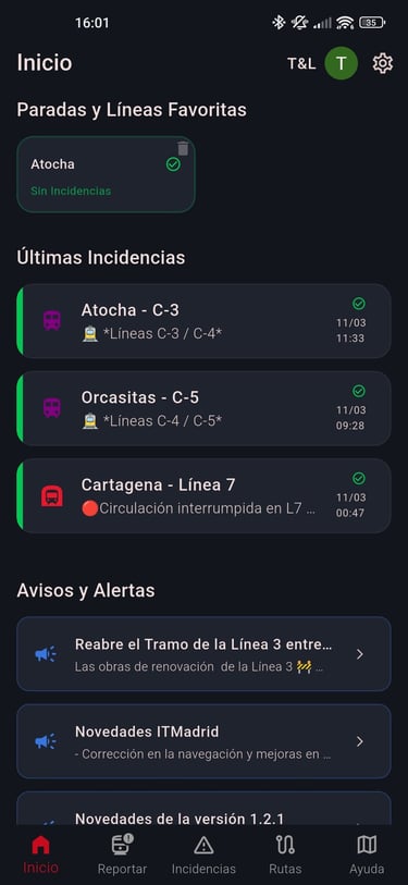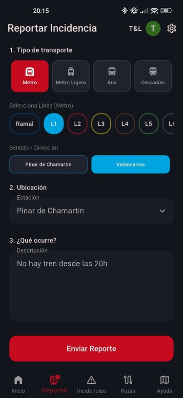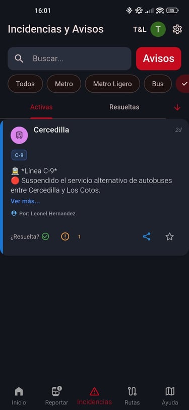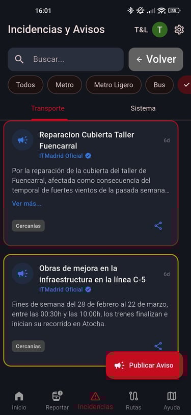Una app que conecta a los usuarios para reportar incidencias en el transporte público de Madrid en tiempo real.